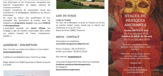 Stage de musiques traditionnelles (focus Irlande), 8 au 12 juillet, Marcoussis