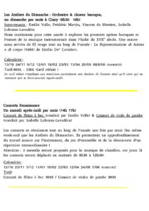 - Les Ateliers du Dimanche : Orchestre & choeur baroque,