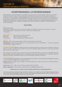 Ateliers pédagogiques “les Traversées Baroques”, résidence festival Musique et Mémoire – 28, 29 et 30 juin – Luxeuil-les-Bains (70)