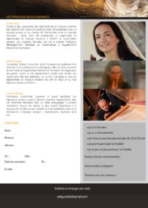 Ces ateliers sont ouverts à tous, le répertoire sera également connecté aux concerts de l’ensemble Les Traversées Baroques, donnés dans le cadre du festival. Les stagiaires auront notamment la possibilité de participer au concert prévu le 21 juillet 2024, en jouant, en préambule du programme « Le madrigal en son jardin », une ou deux des pièces travaillées lors de ces ateliers.