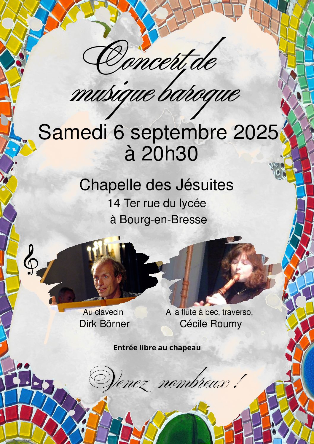 Concert de musique baroque à Bourg en Bresse, dans l’Ain, Samedi 6 septembre à 20h30 à la Chapelle Lalande, 14 Ter, rue du Lycée, Bourg en Bresse avec Cécile Roumy (flûte à bec/ traverso)...