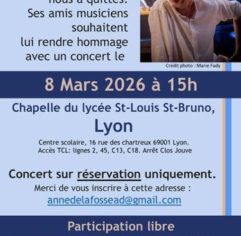 Il y a un an déjà que Gwenaël nous a quittés. Ses amis musiciens souhaitent lui rendre un hommage avec un concert le 8 mars 2026 à 15h, à la chapelle du lycée St...