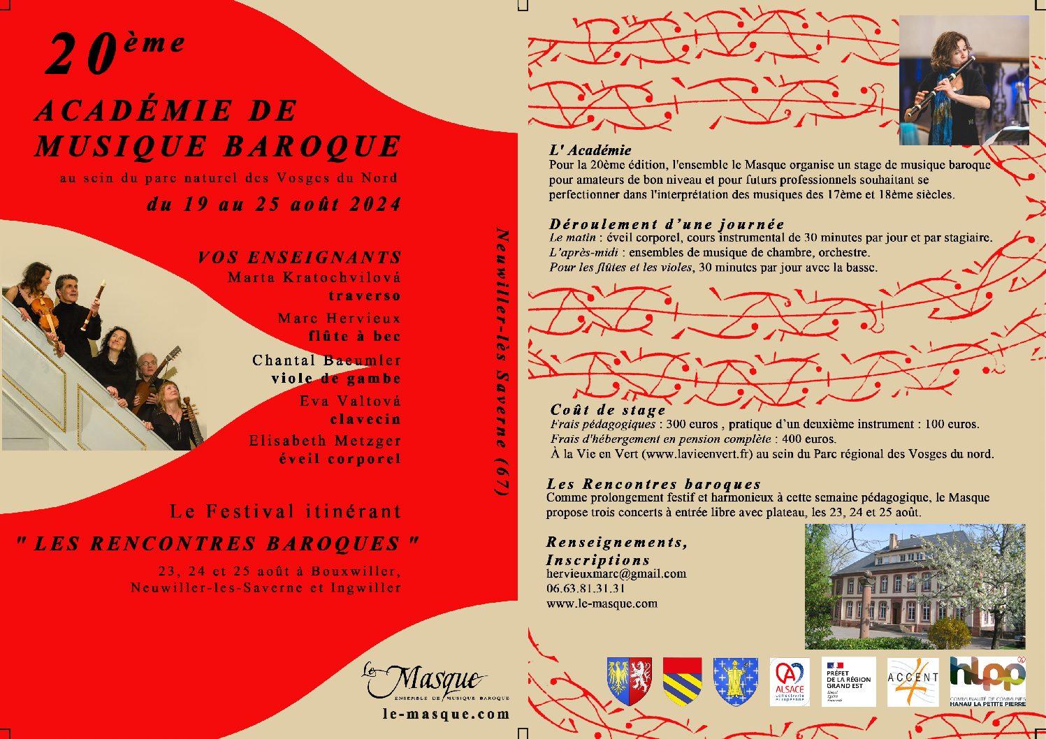 La 20ème Académie de musique baroque de Neuwiller est lancée ! Elle aura lieu du lundi 19 août au dimanche 25 août, aux EUL de Neuwiller-les-Saverne, dans le nord de l’ Alsace. Il y...