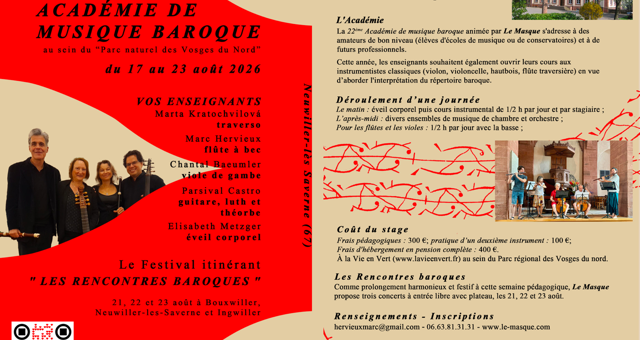 « Georg Philipp Telemann, un voyage à Paris »  sonates et quatuors parisiens Marc Hervieux, flûte à bec  Aliénor Wolteche, violon baroque Chantal Baeumler, viole de gambe Eva Valtová, clavecin Dans une formation de...