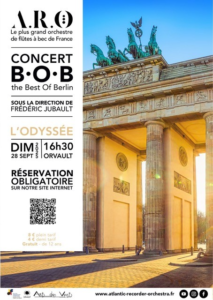 B.O.B – THE BEST OF BERLINAprès une semaine d’un échange musical avec l’orchestre berlinois BOB (Blockflöten Orchester Berlin) l’ARO – le plus grand orchestre de flûtes à bec de France – vous invite à un concert rétrospectif pour revivre cette belle aventure en musique. De Sylvia Corinna Rosin à Gabriel Fauré, en passant par Irmhild Beutler et Felix Mendelssohn, l’ARO vous invite à vibrer au rythme des œuvres qui font son succès, le 28 septembre 2025 à l’Odyssée d’Orvault.