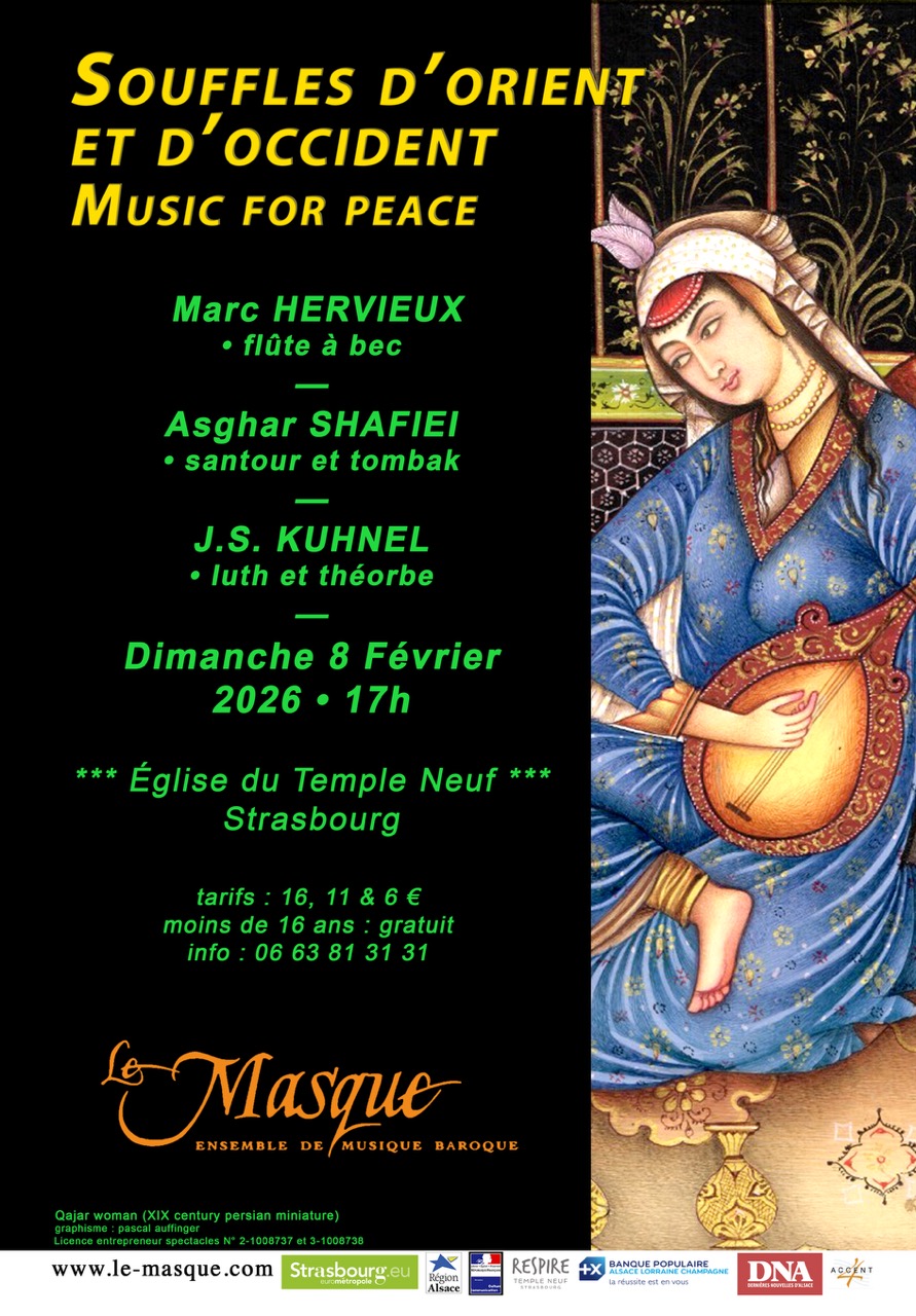 Le prochain concert du Masque aura lieu le dimanche 8 février à 17h à l’église du Temple Neuf à Strasbourg.
