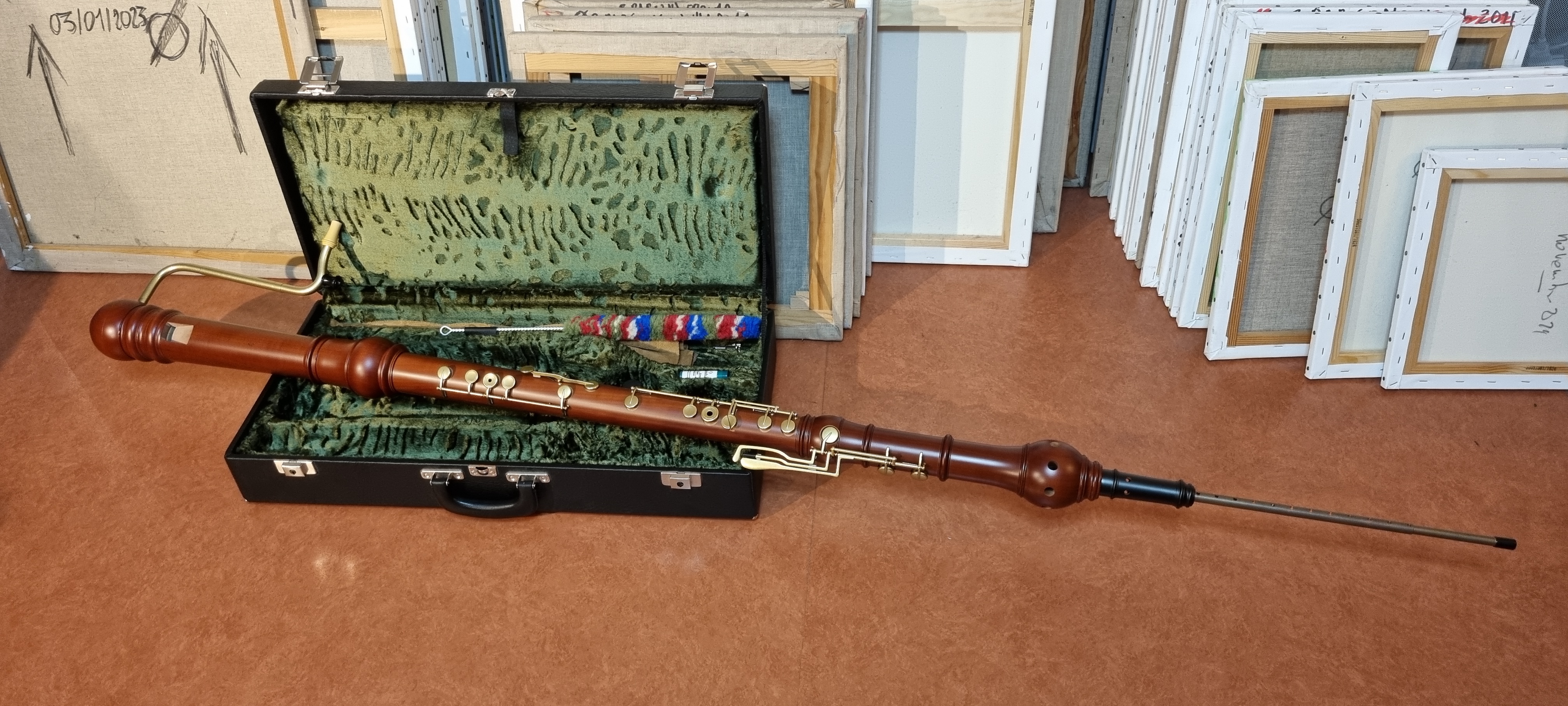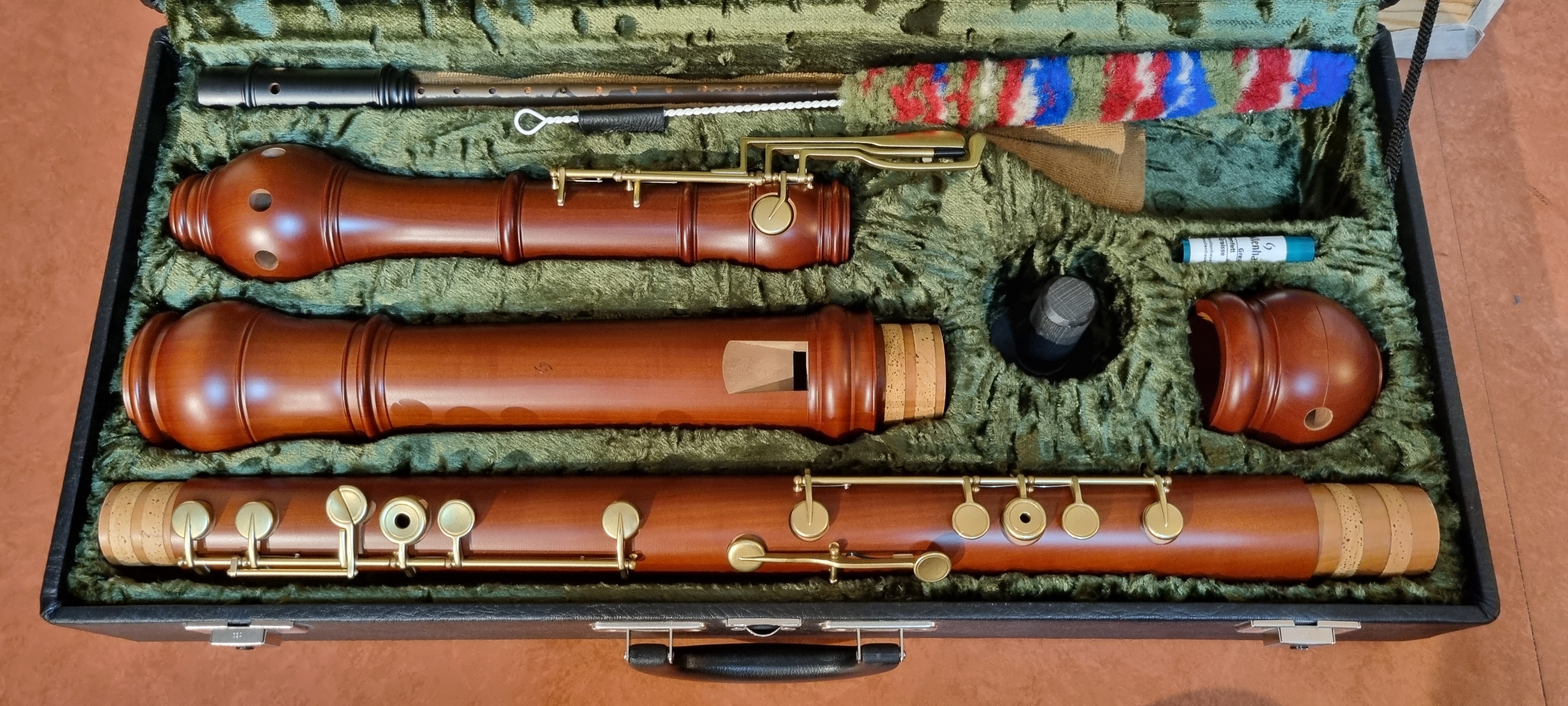 Cette flûte est soigneusement rangée dans son étui rigide (avec sa pique réglable et son bocal en laiton).