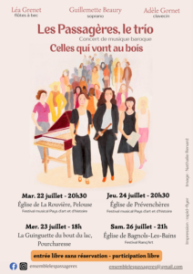 Les Passagères, le trio – Tournée d’été “Celles qui vont au bois” – 22 au 26 juillet