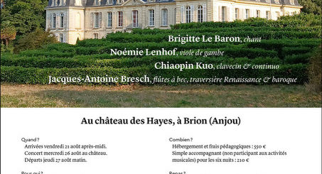 L’association FIAMMA & FOCO a le plaisir de vous proposer un stage de musique ancienne, encadré par Marta GLIOZZI, Armelle MORVAN et Maxime CHEVROT.