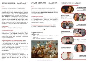 - et un stage adultes (18 ans et +) réunis pour un séjour exceptionnel tous ensemble.